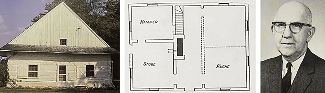 Images above: Bertolet-Schneider Cabin (Oley Valley) and floorplan: "The Continental Log House" Complete text online. Portrait of Robert Bucher: Mennonite Heritage Center.