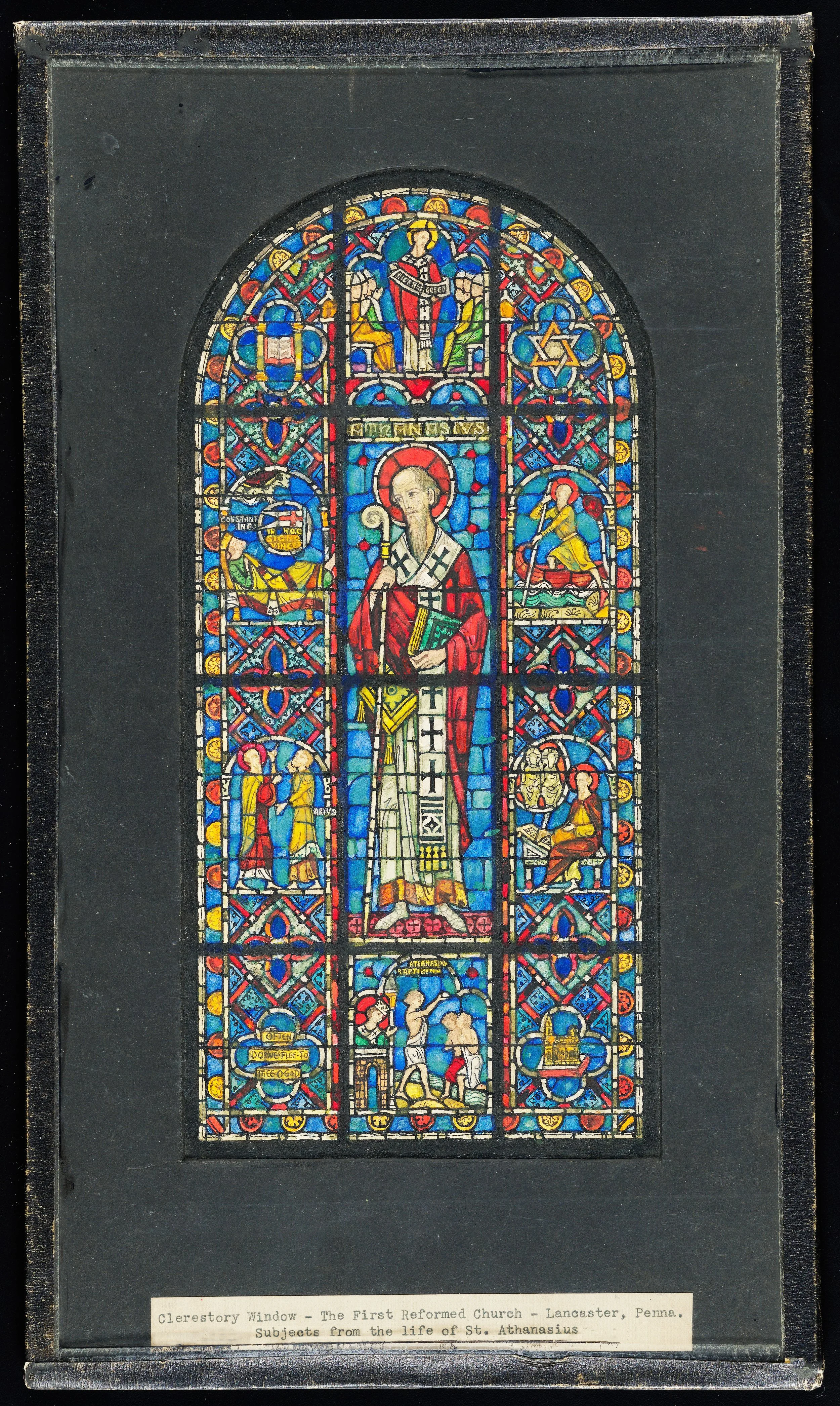 In 1925 Joseph Reynolds created eight windows for Lancaster’s Reformed Seminary. The pastor of First Reformed Church, Rev. W. Stuart Cramer, helped lead the committee that directed Reynold’s design and installation of those new seminary windows.