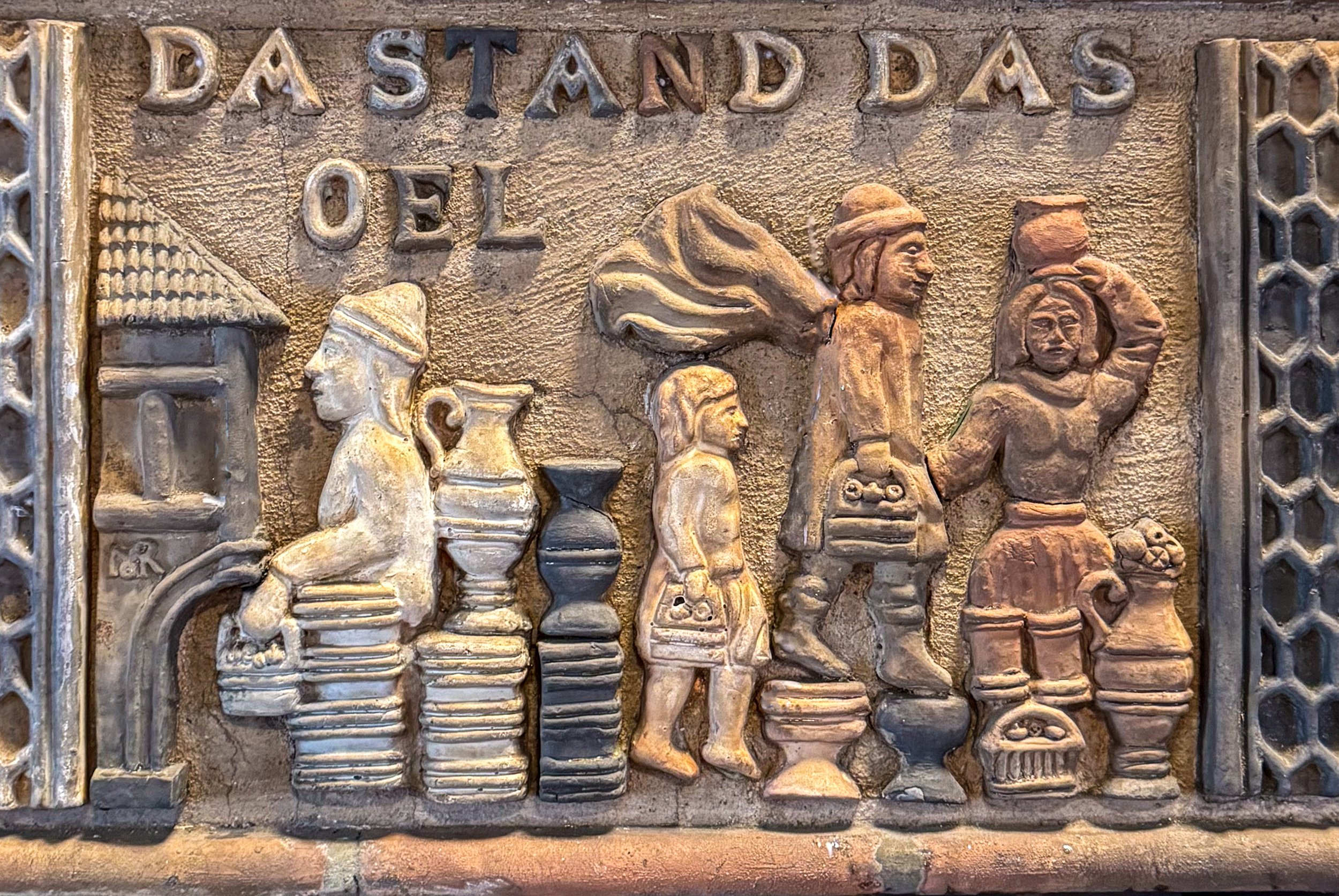 Above: German text: Da stand das Oel: Translation: There stood the [olive] oil.