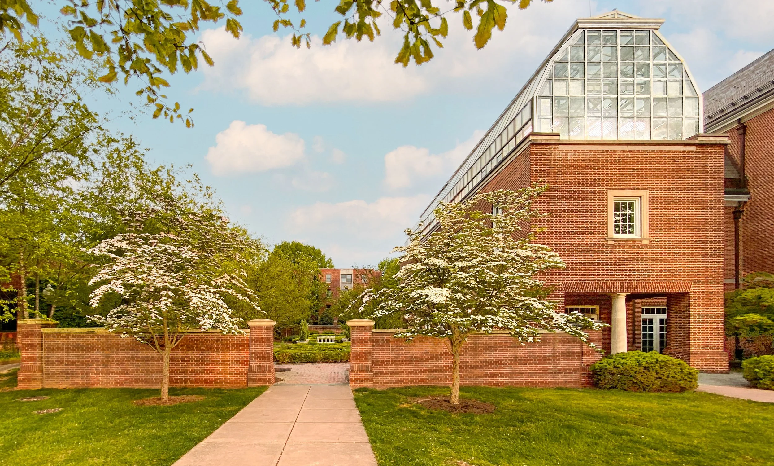 The third-floor greenhouse is the Steinman Plant Growth Facility, originally underwritten by Caroline Steinman Nunan. The campus-wide arboretum is also named for Mrs. Nunan.